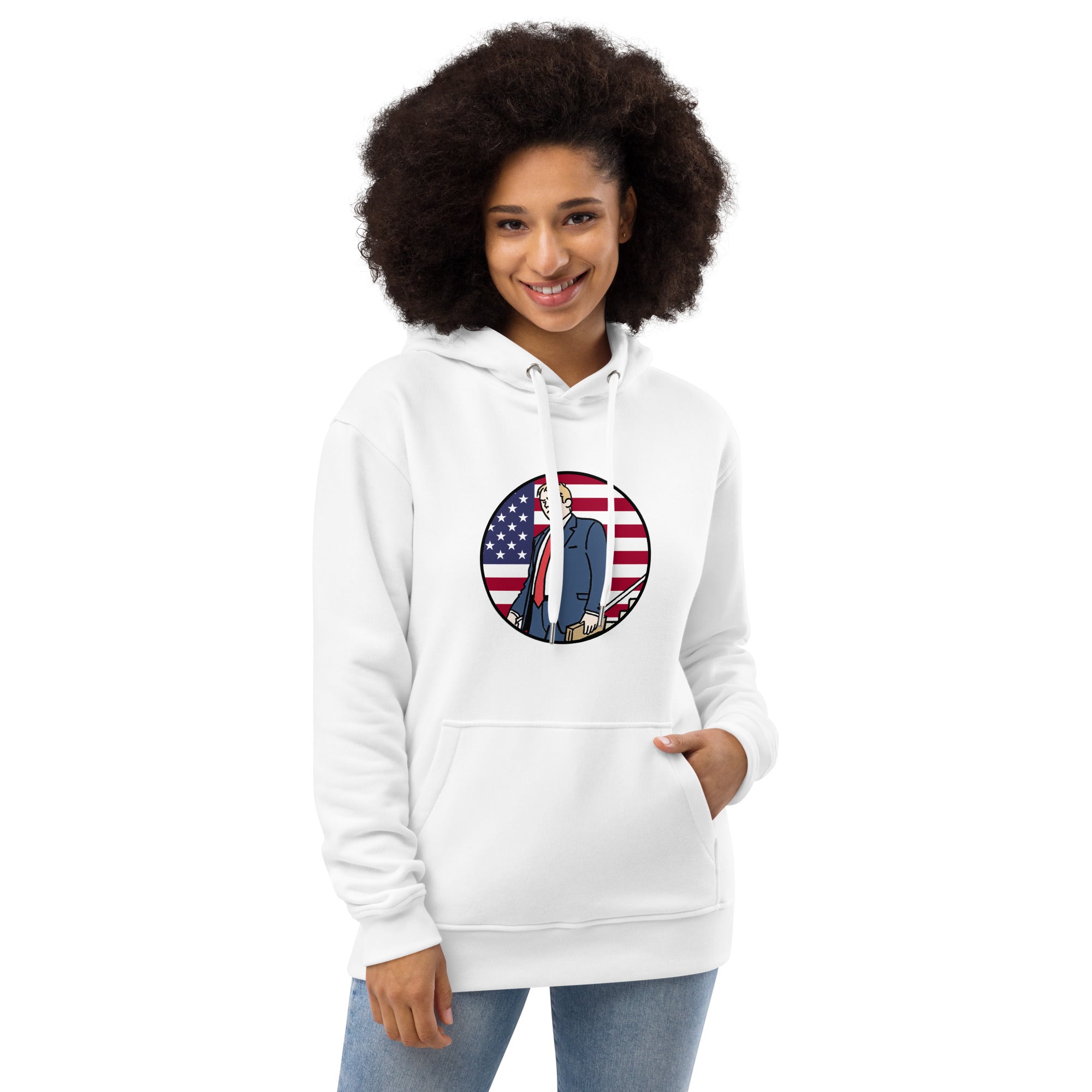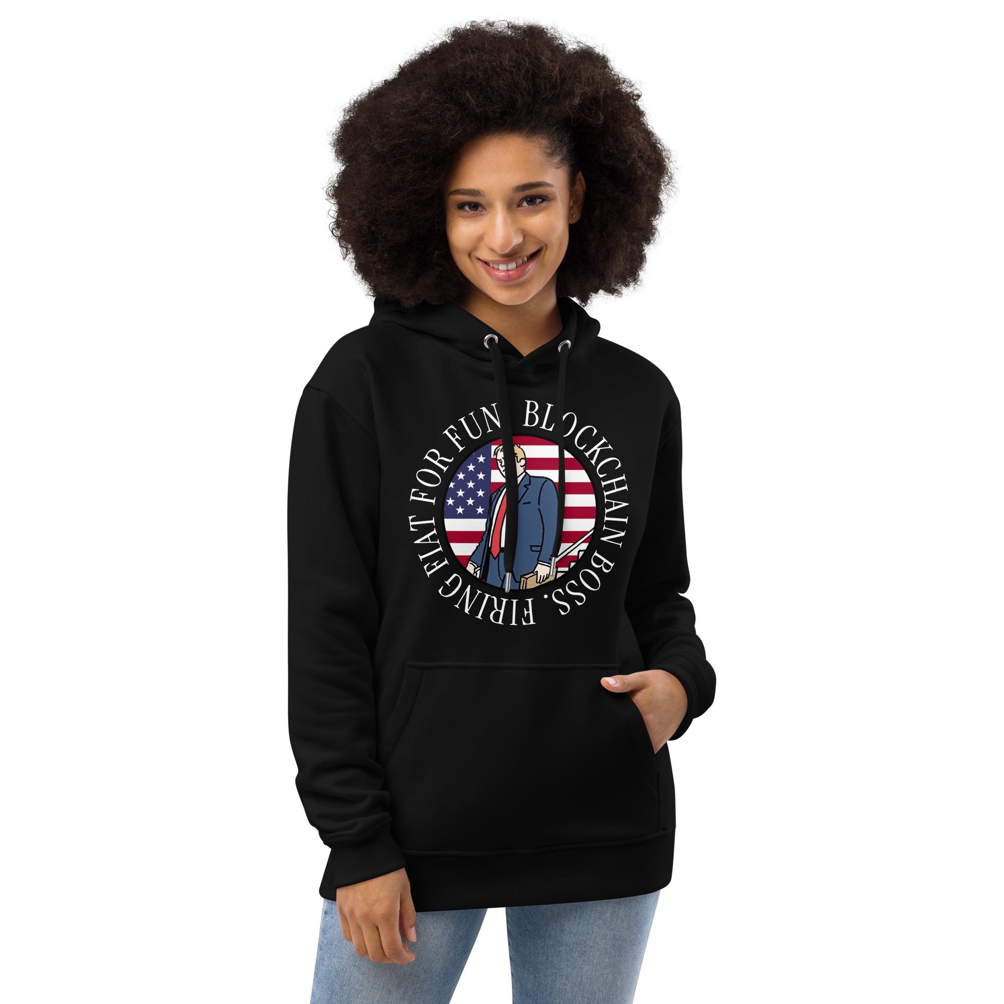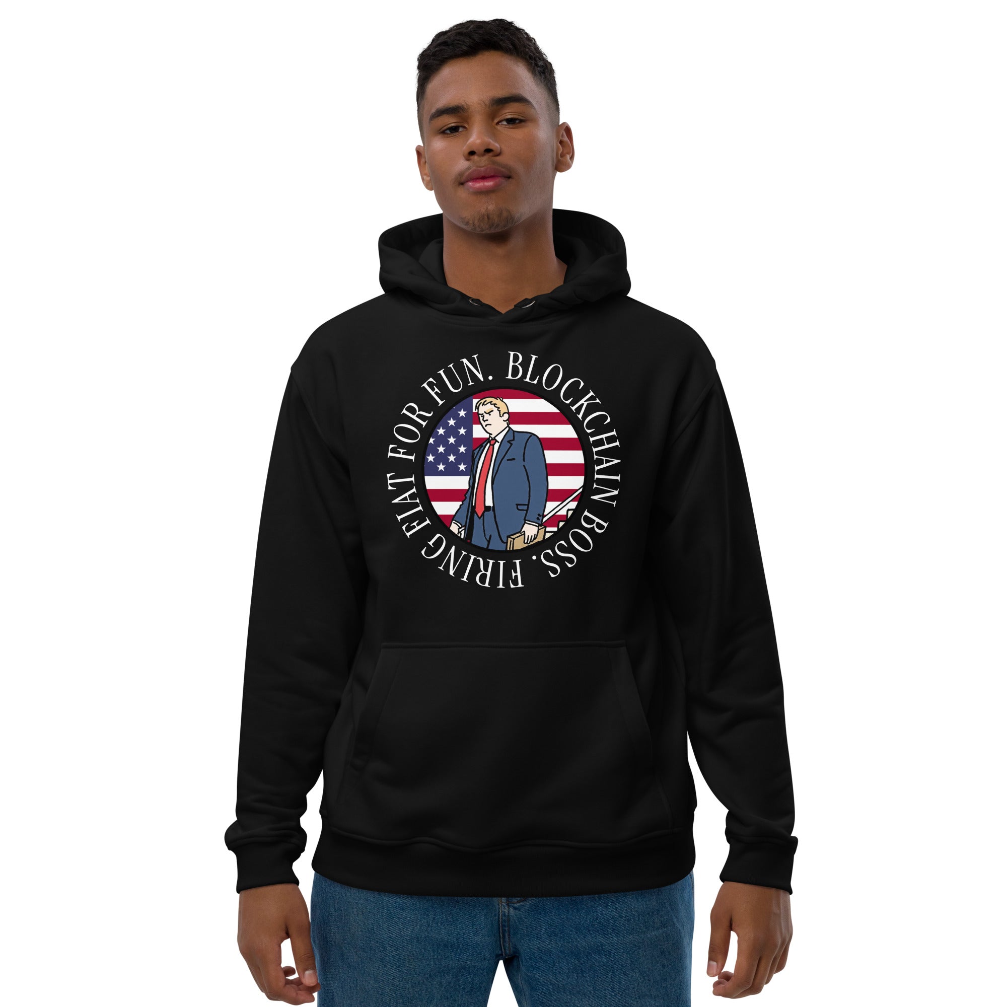 Meet the Blockchain Boss Firing Fiat for Fun Premium Eco Hoody, crafted for patriots torching fiat and stacking sats with the 45th and 47th President’s crypto swagger. Inspired by Trump’s blockchain revolution, this hoody’s comfy fit, double-layered hood, and kangaroo pocket make it a streetwear must-have. Perfect for layering and flexing your MAGA-powered, digital currency dominance!