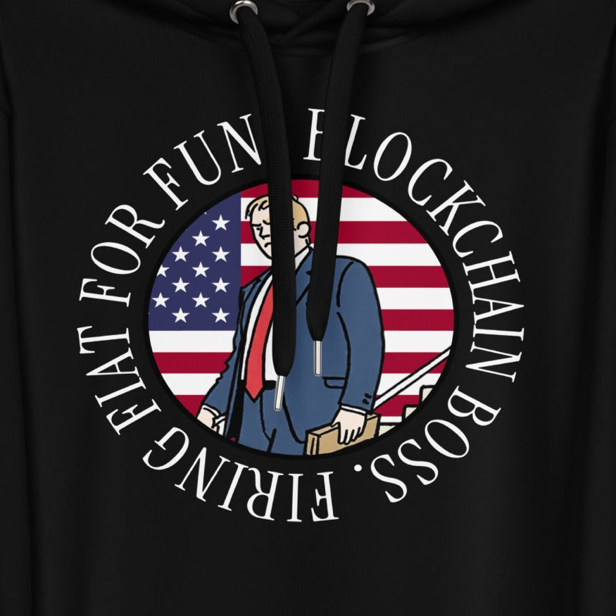 Blockchain Boss Firing Fiat for Fun Premium Eco Hoody (Black / White)